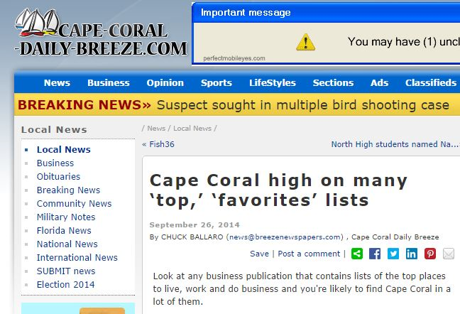 (Source: Cape Coral high on many ‘top,’ ‘favorites’ lists, http://www.cape-coral-daily-breeze.com)